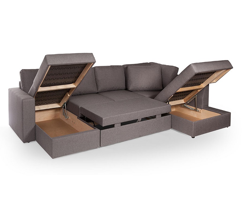 Diivanvoodi tagakülg on viimistletud ja seda saab paigutada keset tuba.