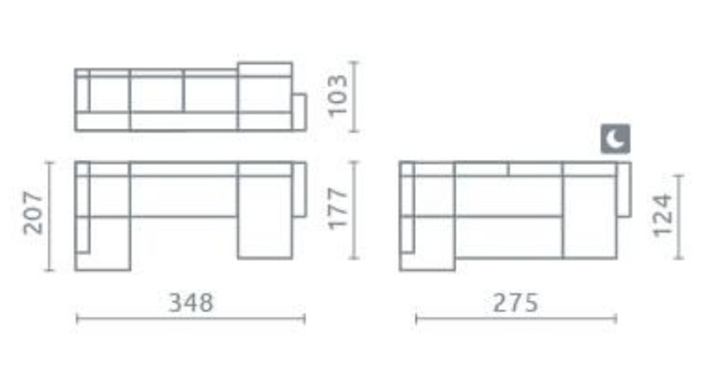 Sügavus: 177 cm/207 cm.