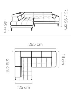 Laius: 285 cm.