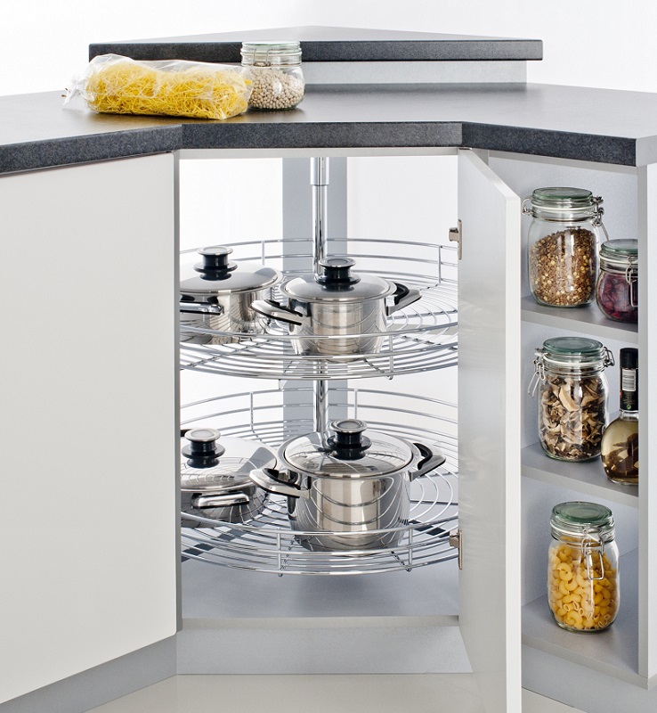 1 uksega nurgakapp. Ukse taga on riiul.