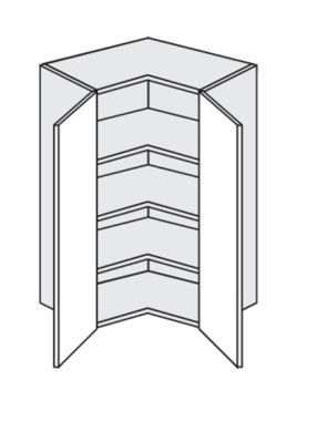 2-uksega nurgakapp. Uste taga on riiulid.
