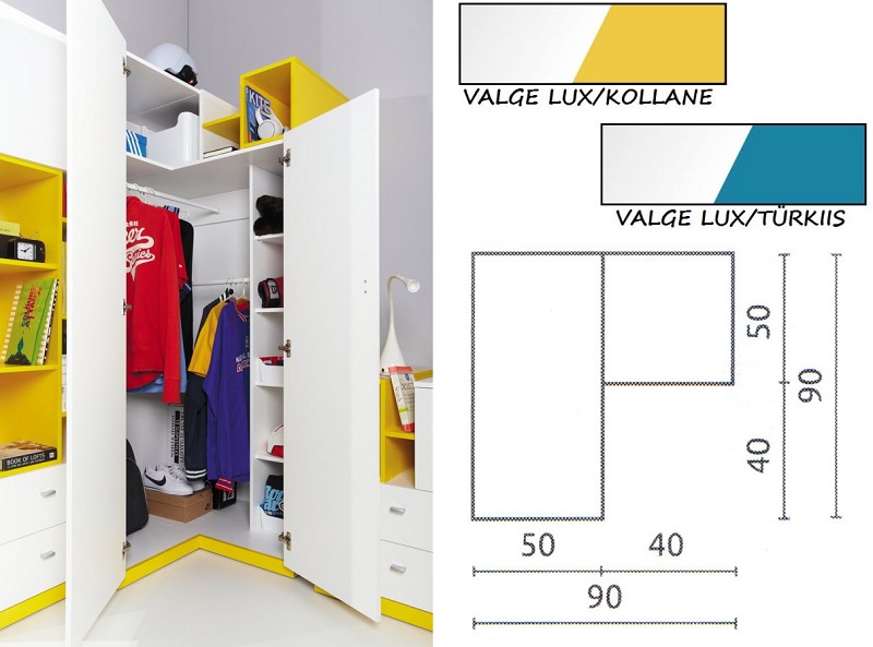 Värv: valge lux/kollane; valge lux/türkiis.