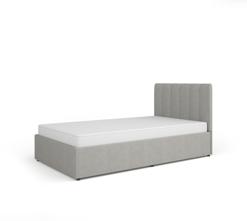 Voodi karkass on valmistatud mööbliplaadist ja kaetud kangaga.