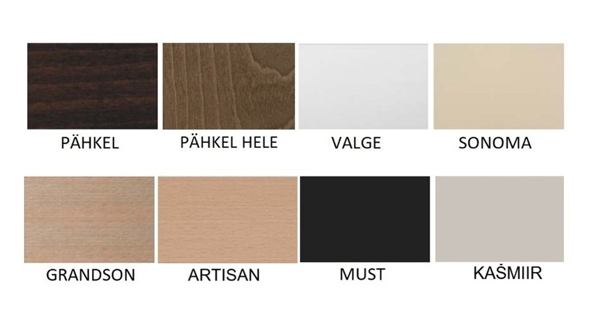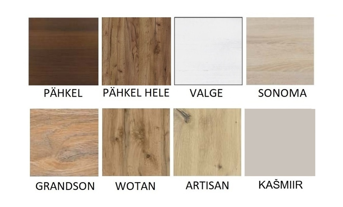 Lauaplaadi värvivalik: pähkel; pähkel hele; valge; sonoma; grandson; wotan; artisan; kašmiir.