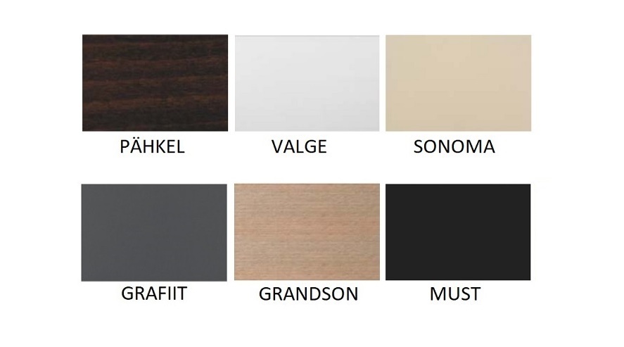 Laua karkassi värvivalik: pähkel; valge; sonoma; grafiit; grandson; must.