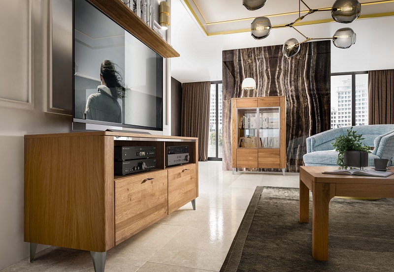 Materjal: naturaalsest harjatud tammespoonist mööbliplaat + puidudekooriga lamineeritud mööbliplaat.