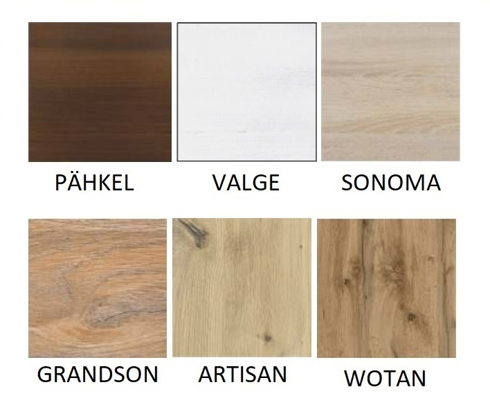 Laua karkassi värvivalik: pähkel; valge; sonoma; grandson; must.