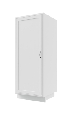 1-uksega poolkõrge kapp. Ukse taga on riiulid.