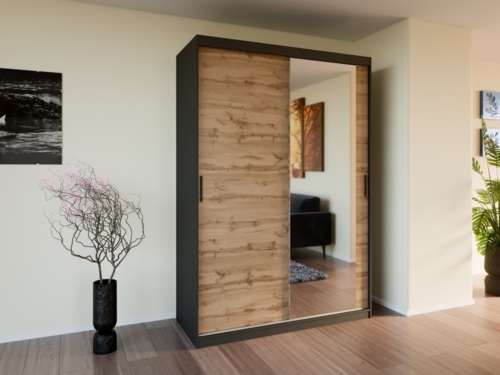 Riidekapil on 2 lükandust. Üks uks on peegliga.