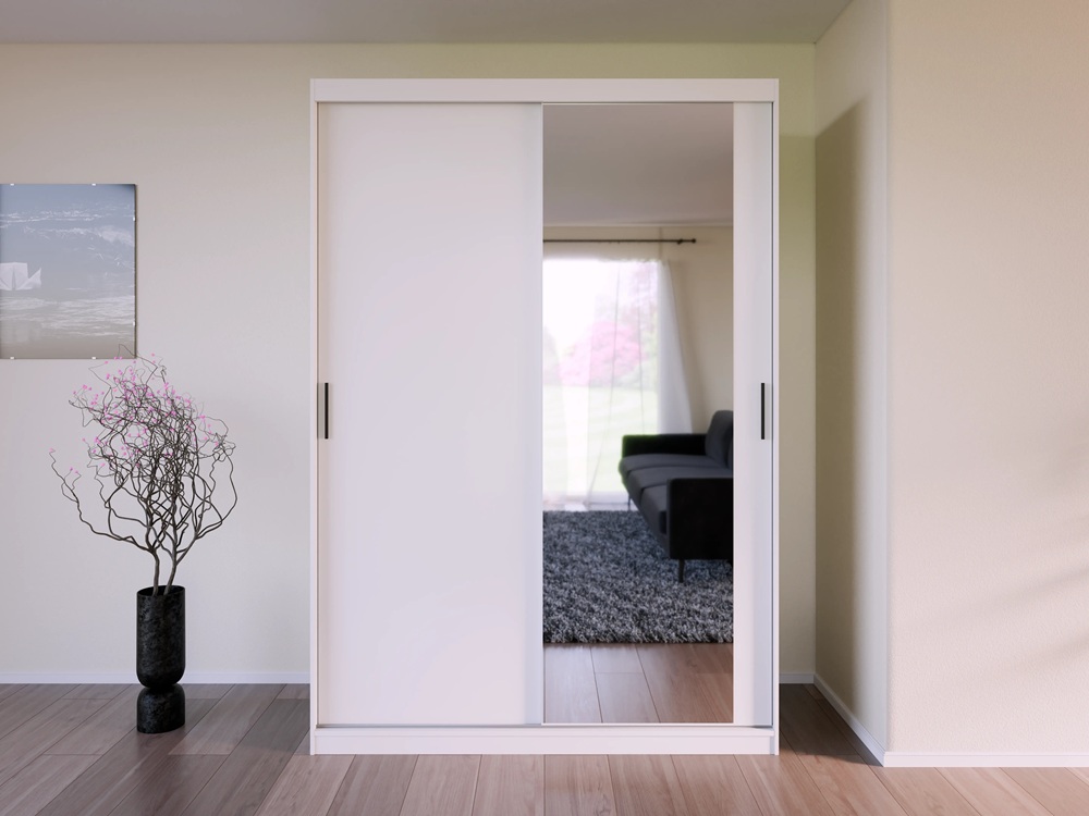 Riidekapil on 2 lükandust. Üks uks on peegliga.