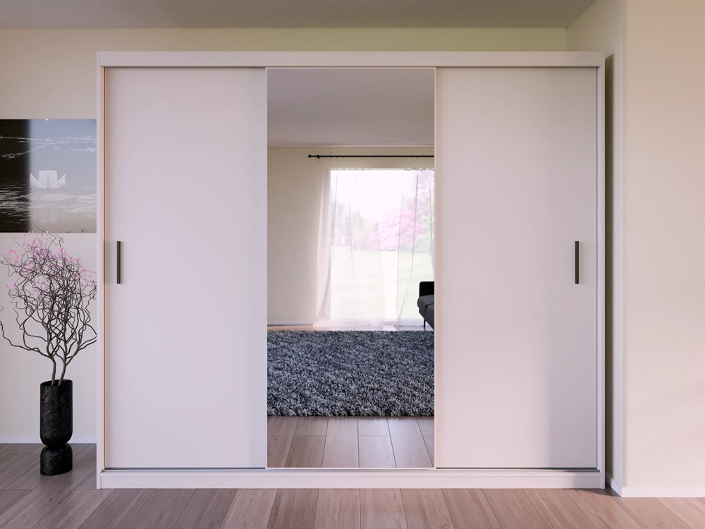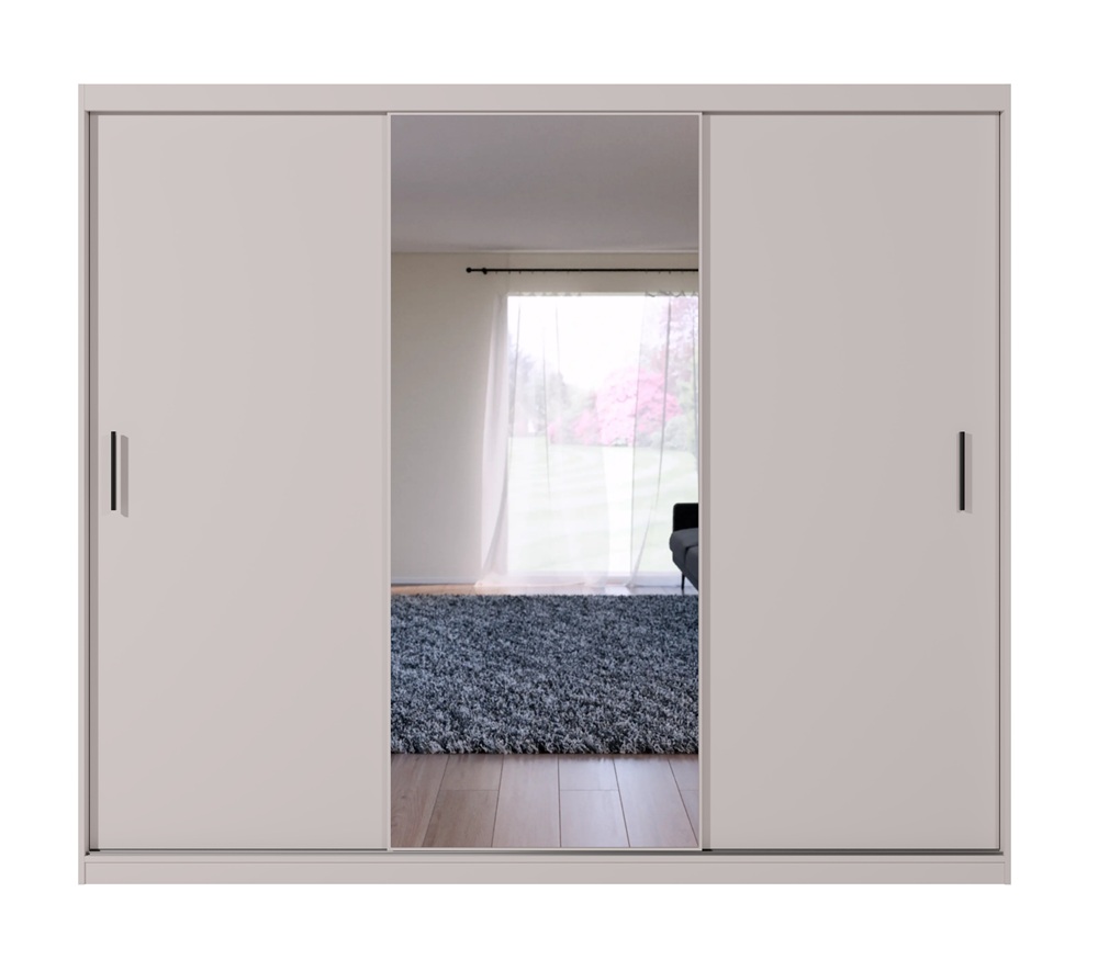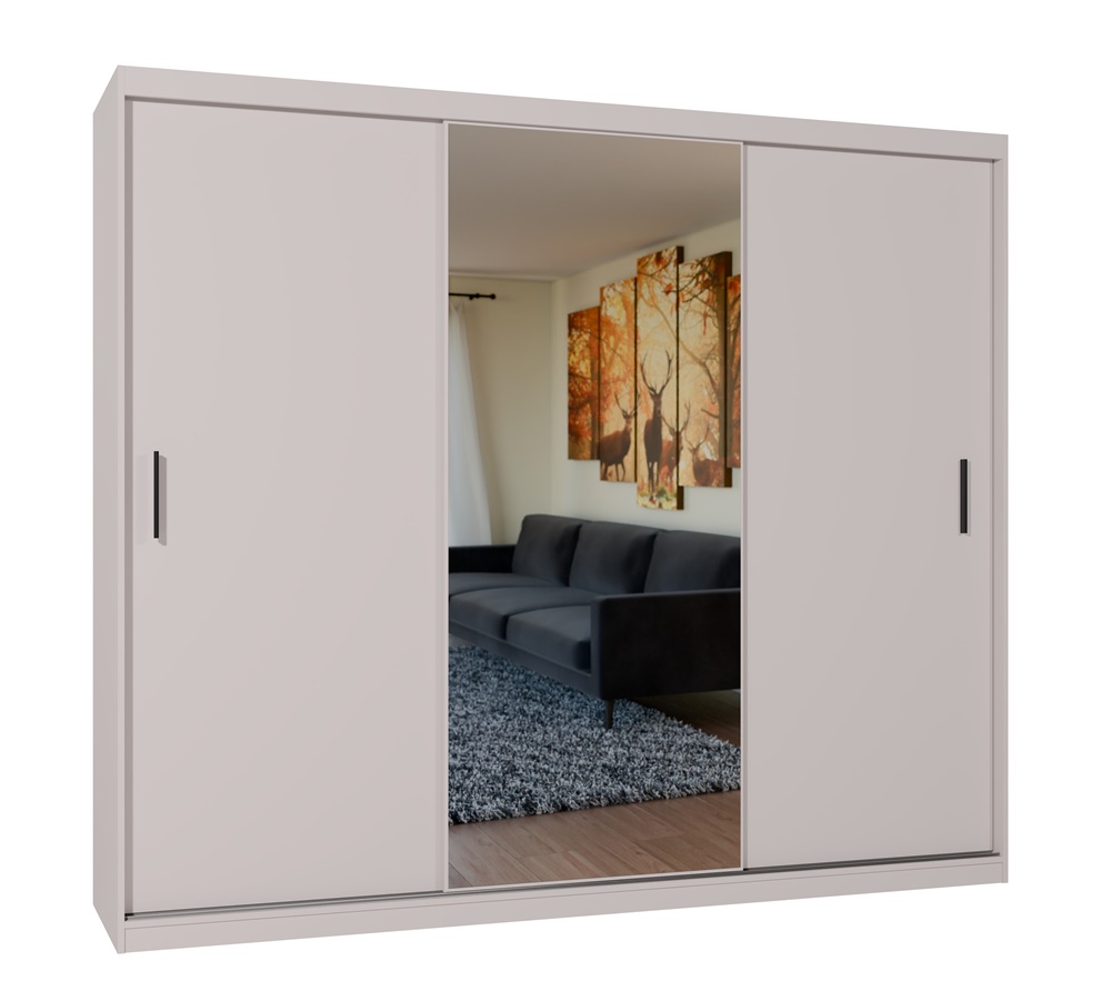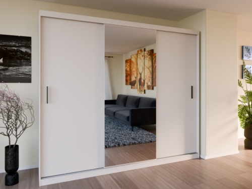 Riidekapil on 3 lükandust. Keskmine uks on peegliga.