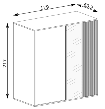 Üks uks on kaetud osaliselt peegliga ja osaliselt lamelliga (musta värvi mööbliplaat + MDF liistud värviga – tamm artisan).