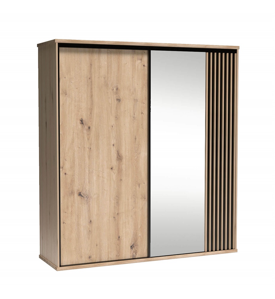 Üks uks on kaetud osaliselt peegliga ja osaliselt lamelliga (musta värvi mööbliplaat + MDF liistud värviga – tamm artisan).