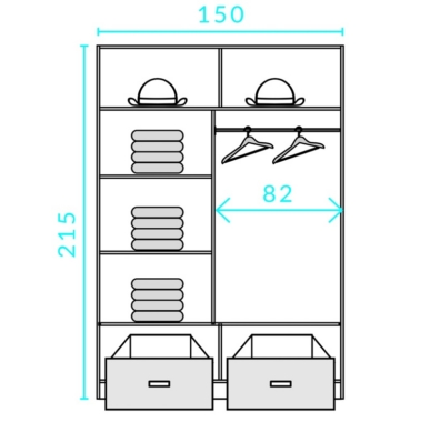 Riidekapp Canada CA12-150, tamm riva/kašmiir (150/60/215)
