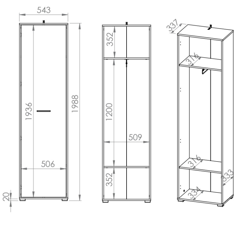 Kapil on 1 uks. Ukse taga on 2 riiulit ja riidepuutoru.