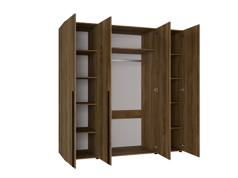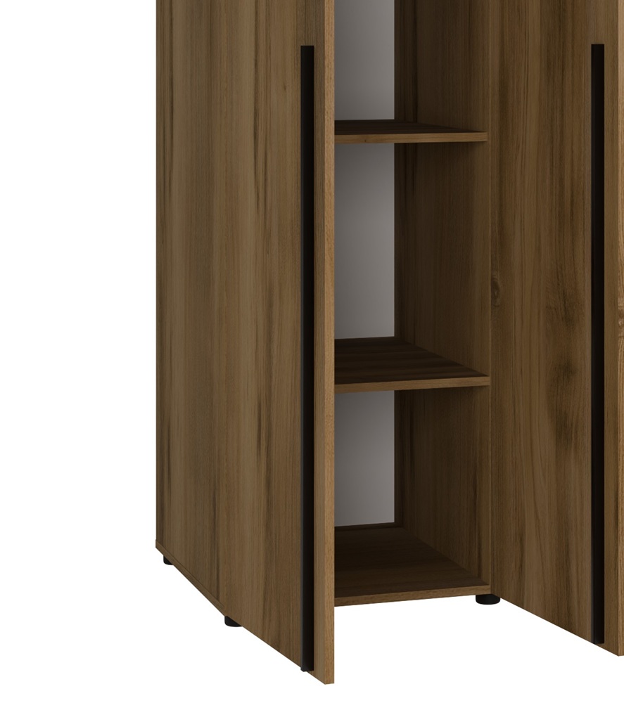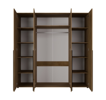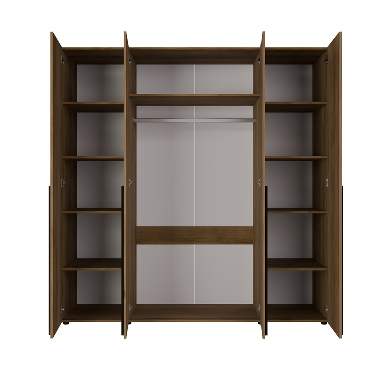 Äärmiste uste taga on pesuriiulid, kesmiste uste taga on 1 riiul ja 1 riidepuutoru pikemate riiete riputamiseks.
