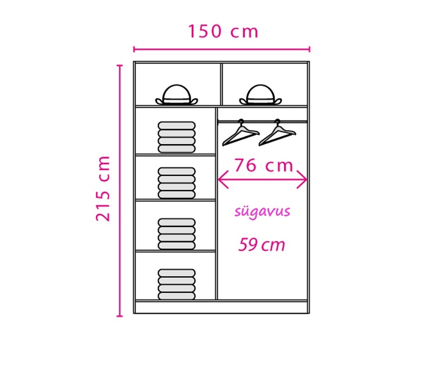 Riidekapil on 2 lükandust. 1 uks on peegliga.