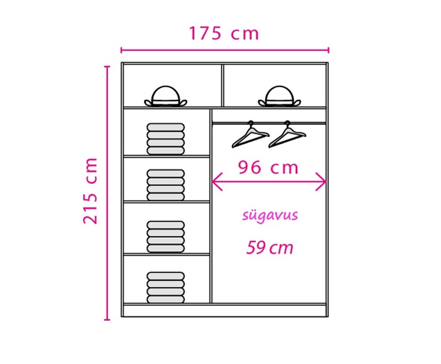 Riidekapil on 2 lükandust. 1 uks on peegliga.