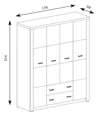 Riidekapil on 4 ust ja 2 sahtlit.