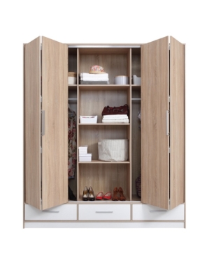 Riidekapil on 2 voldikust ja 3 sahtlit.