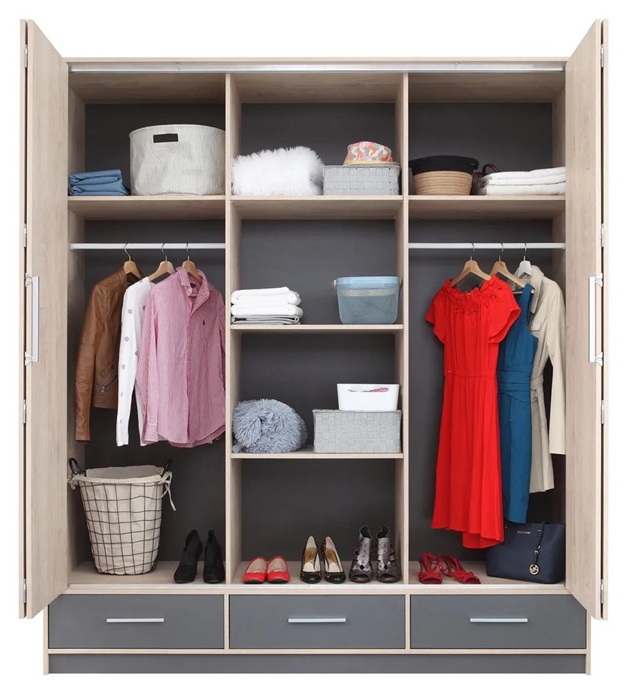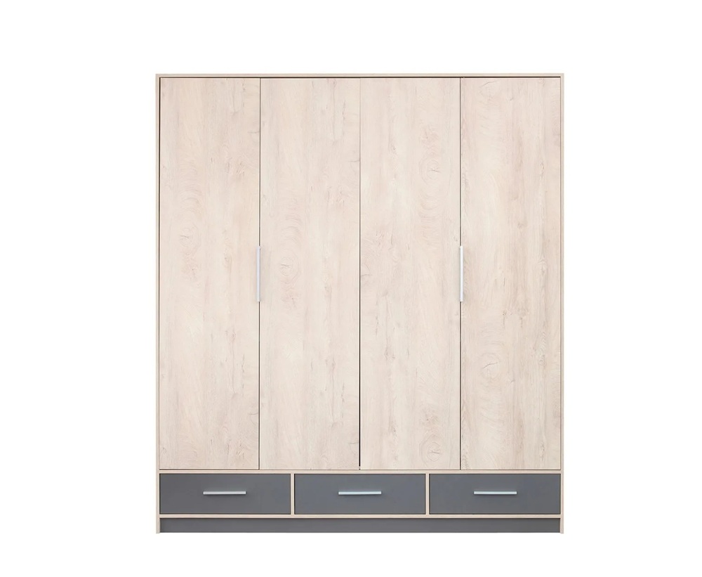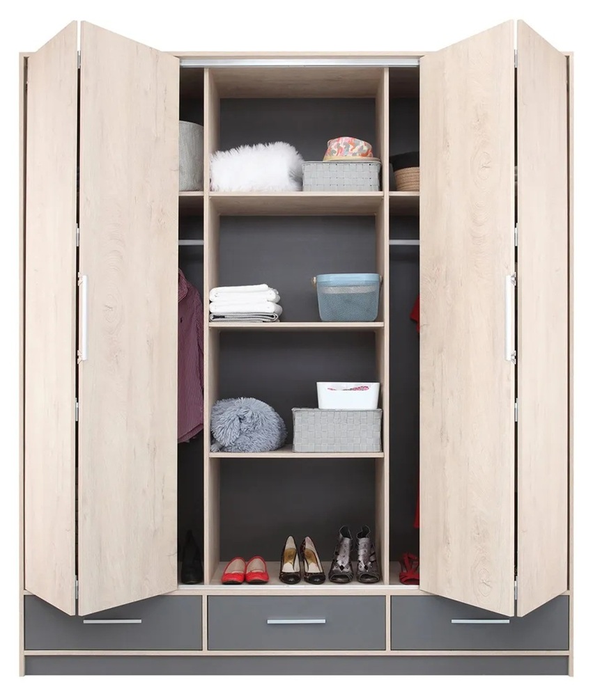 Riidekapil on 2 voldikust ja 3 sahtlit.