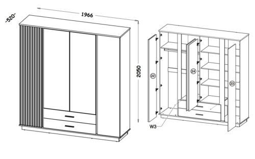Riidekapp Lamelo La15 (145,5/52/193,6)