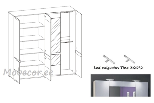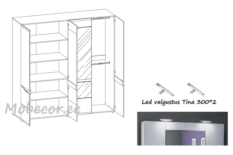 Riidekapil on 4 ust, keskmised uksed on peegliga.