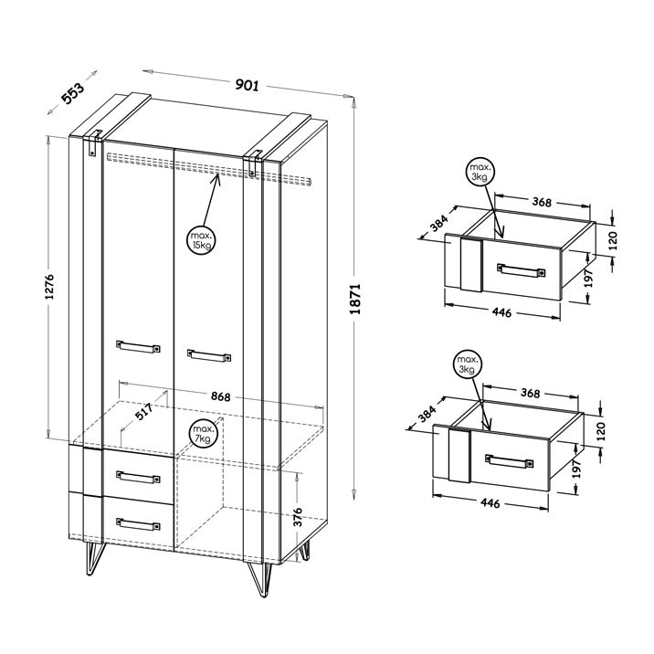 Riidekapp Majorka MA01 (90/53/190)