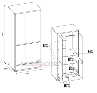 Riidekapp Shetland 2D2S TYP 20 (86/58/197)