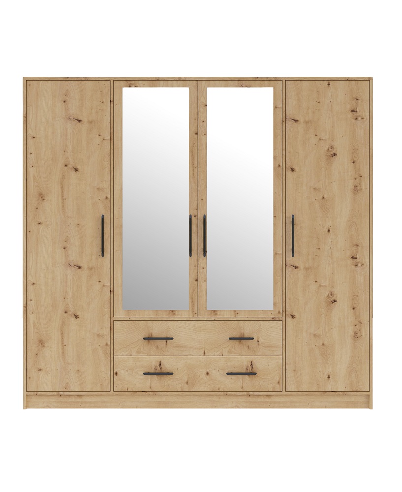 Riidekapil on 4 ust ja 2 sahtlit. Keskmised uksed on peegliga.