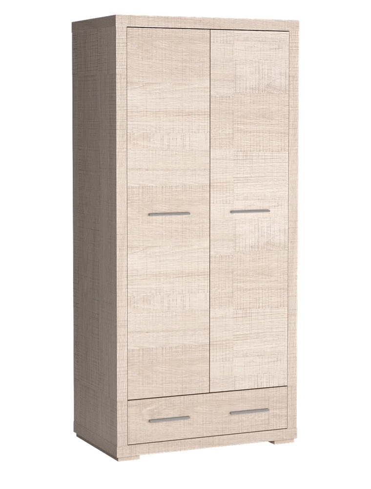 Riidekapil on 2 ust ja 1 sahtel. Uste taga on riidepuutoru.