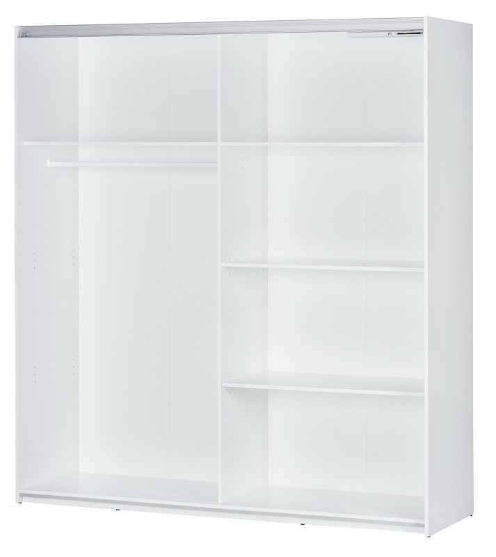 Riidekapil on 2 lükandust. Uste taga on riidepuutoru ja mütsiriiul.