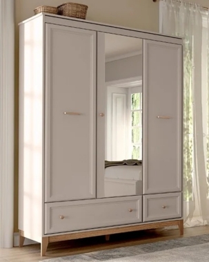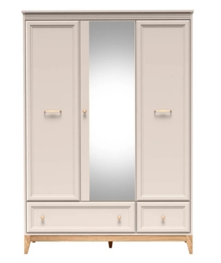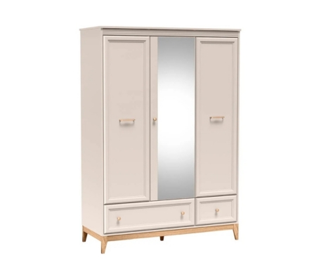 Riidekapil on 3 ust ja 2 sahtlit. Keskmine uks on peegliga.
