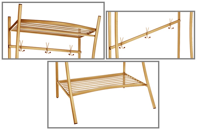 Metallist riidenagil on 6 paari riputuskonkse, riidepuutoru, mütsiriiul ja jalanõuderiiul.