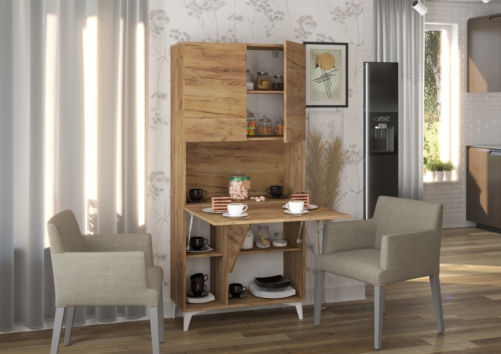 Riiulil on 2 ust ülaosas. Alaosas kokku klapitav lauaplaat.