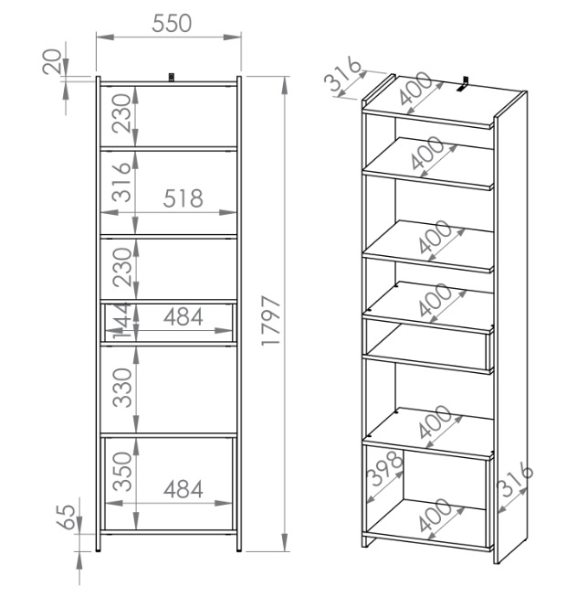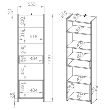 Riiul Tris 02 (55/40/179,7)
