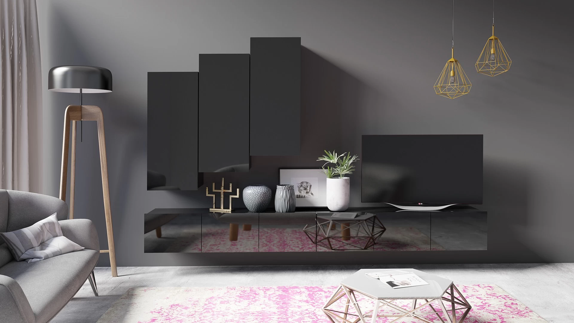 Seinakapp Calabrini C-15, must/must kõrgläikega (45/32/117)