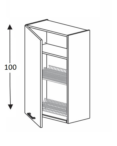 - 1-uksega seinakapp. Ukse taga on nõuderest koos alusega.