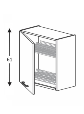 - 1-uksega seinakapp. Ukse taga on nõuderest koos alusega.