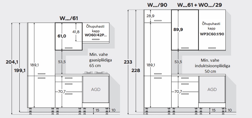 - 1-uksega kõrgendus/ülakapp kõrgetele kappidele.