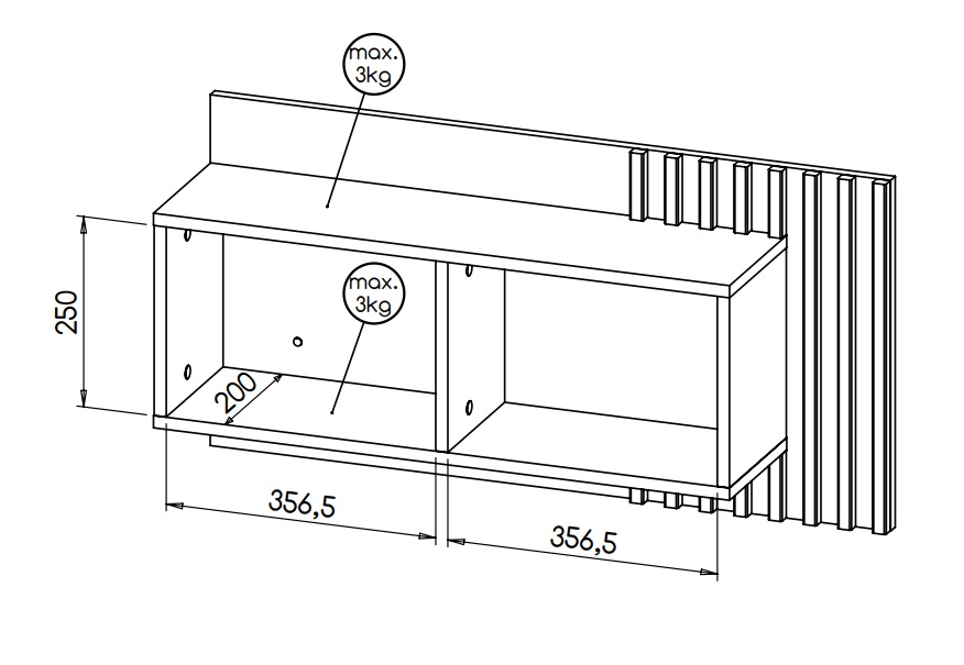 Materjal: lamineeritud puitlaastplaat + MDF lamell paneelid.