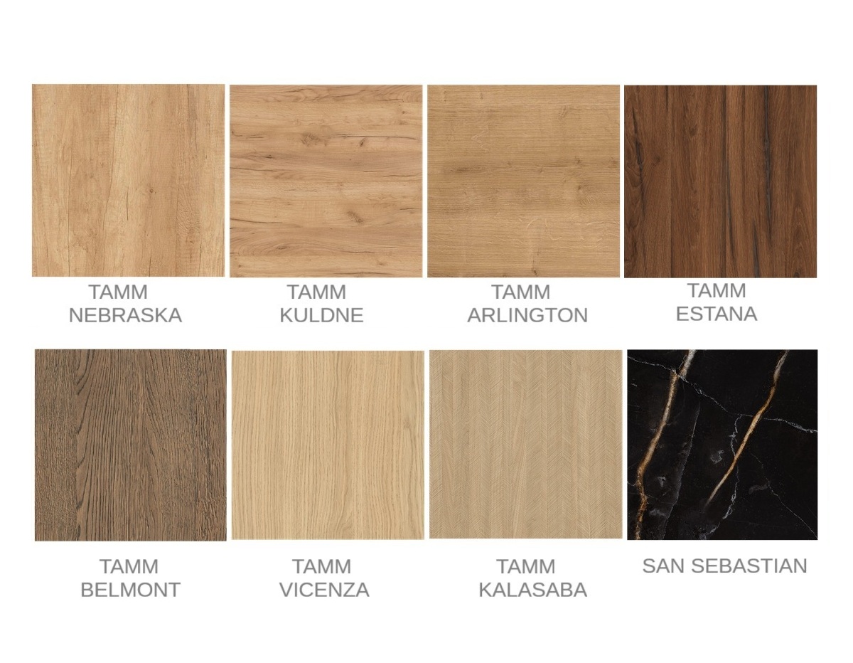 Värvivalik: marmor crystal; plaatinavalge; tamm cremona; tamm barista; cappuccino; kaszmir B; marmor calcatta; tamm hikkori; tamm nebraska; tamm kuldne; tamm arlington; tamm estana; tamm belmont; tamm vicenza; kalasaba tamm; san sebastian.
