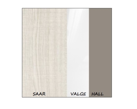 Esipinnad: valge kõrgläikega (PVC)/hall matt.