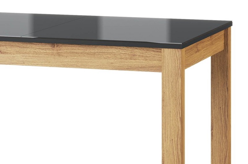 Pikendatava söögilaua pealmine plaat on kaetud musta värvi klaasiga.