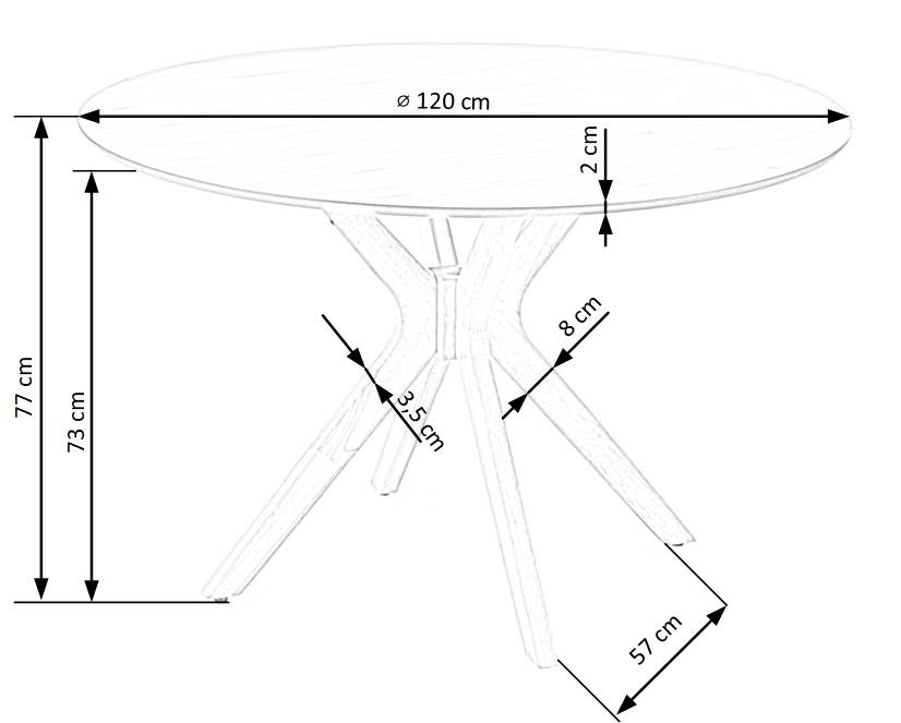 Lauaplaadi läbimõõt: 120 cm.