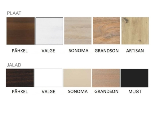 Jalgade värvivalik: pähkel; valge; sonoma; grandson; must.
