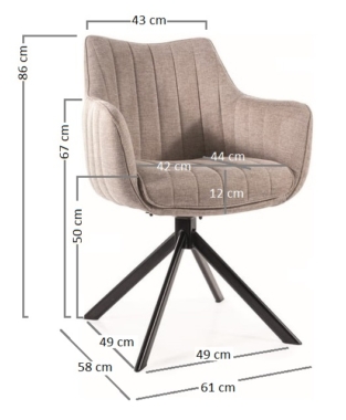 Seljatoe laius ülevalt: 43 cm.