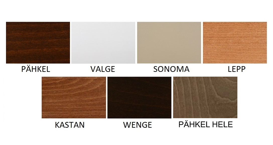 Puidu värvid: pähkel; valge; sonoma; lepp; kastan; wenge.