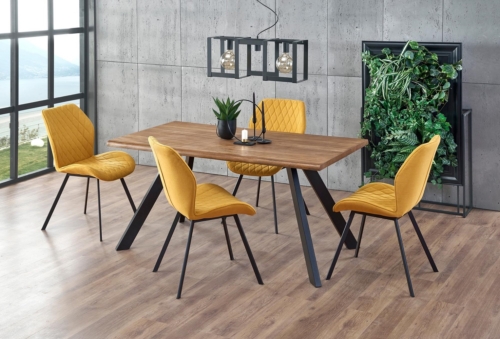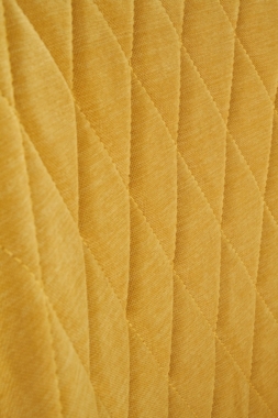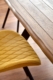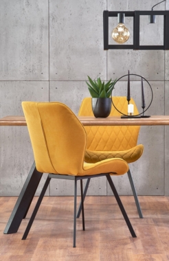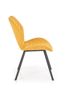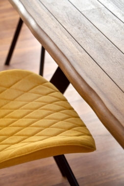 Tooli iste ja seljatugi on kaetud sinepikollase kangaga.