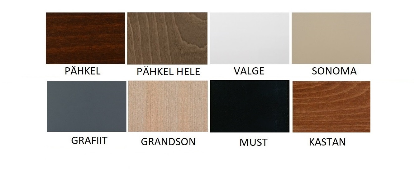 Puidu värvid: pähkel; pähkel hele; valge; sonoma; grafiit; grandson; must; kastan.